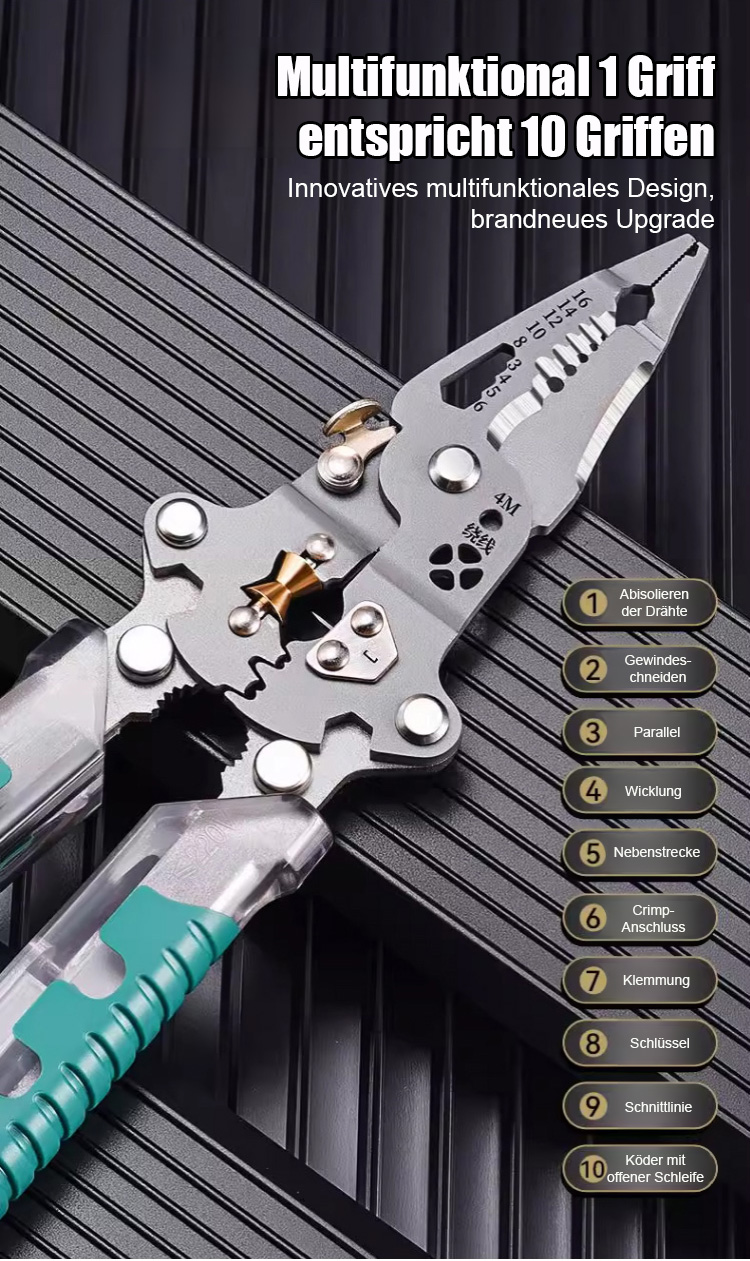 ✅Faltbarer 18-in-1-Multifunktions-Abisolierer in Industriequalität zum Festziehen von Schrauben, geteiltes Drahtrollen-Design zum Schneiden der Drahthaut