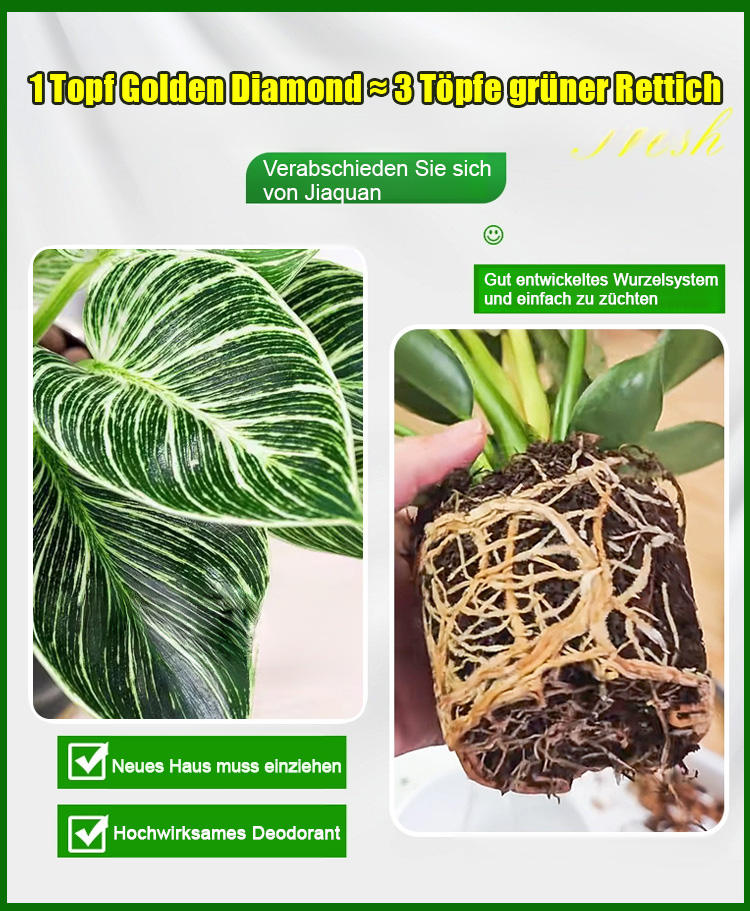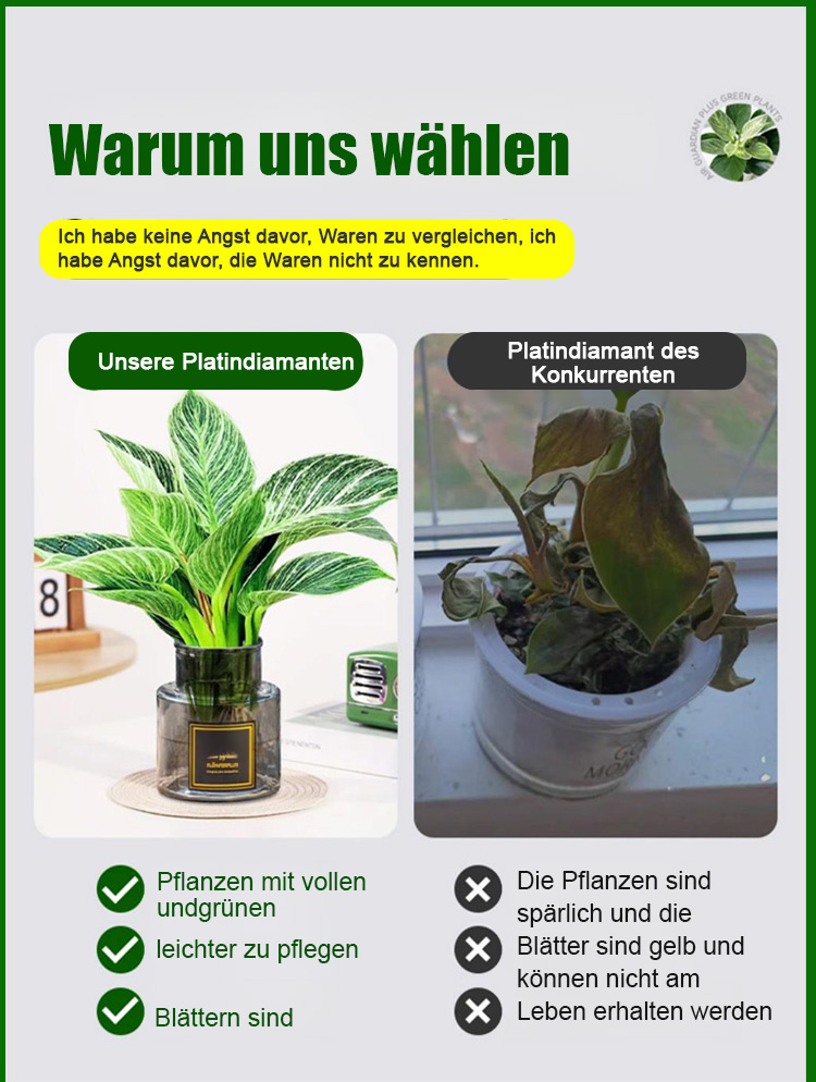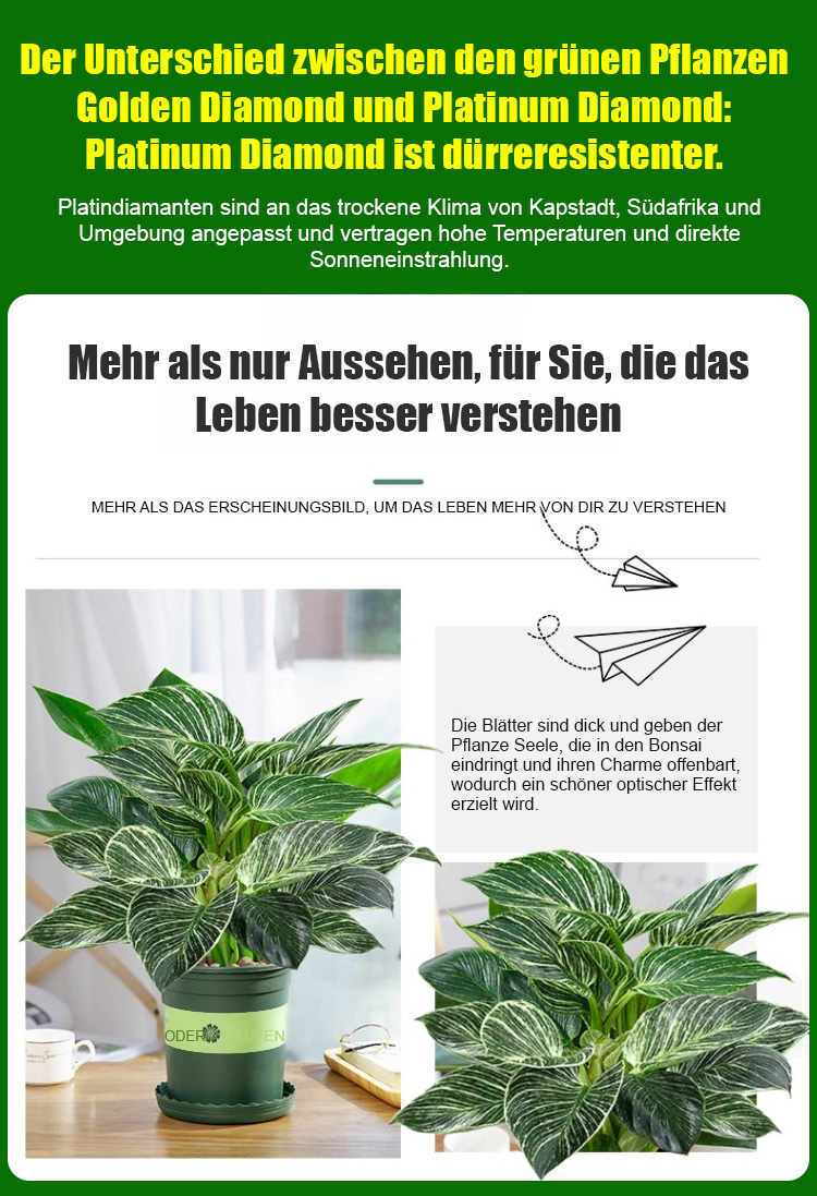【Trockenheitsresistenter Giftkönig】Platin-Diamant-Grüne Prinzessin Topfpflanze mit großen Blättern
