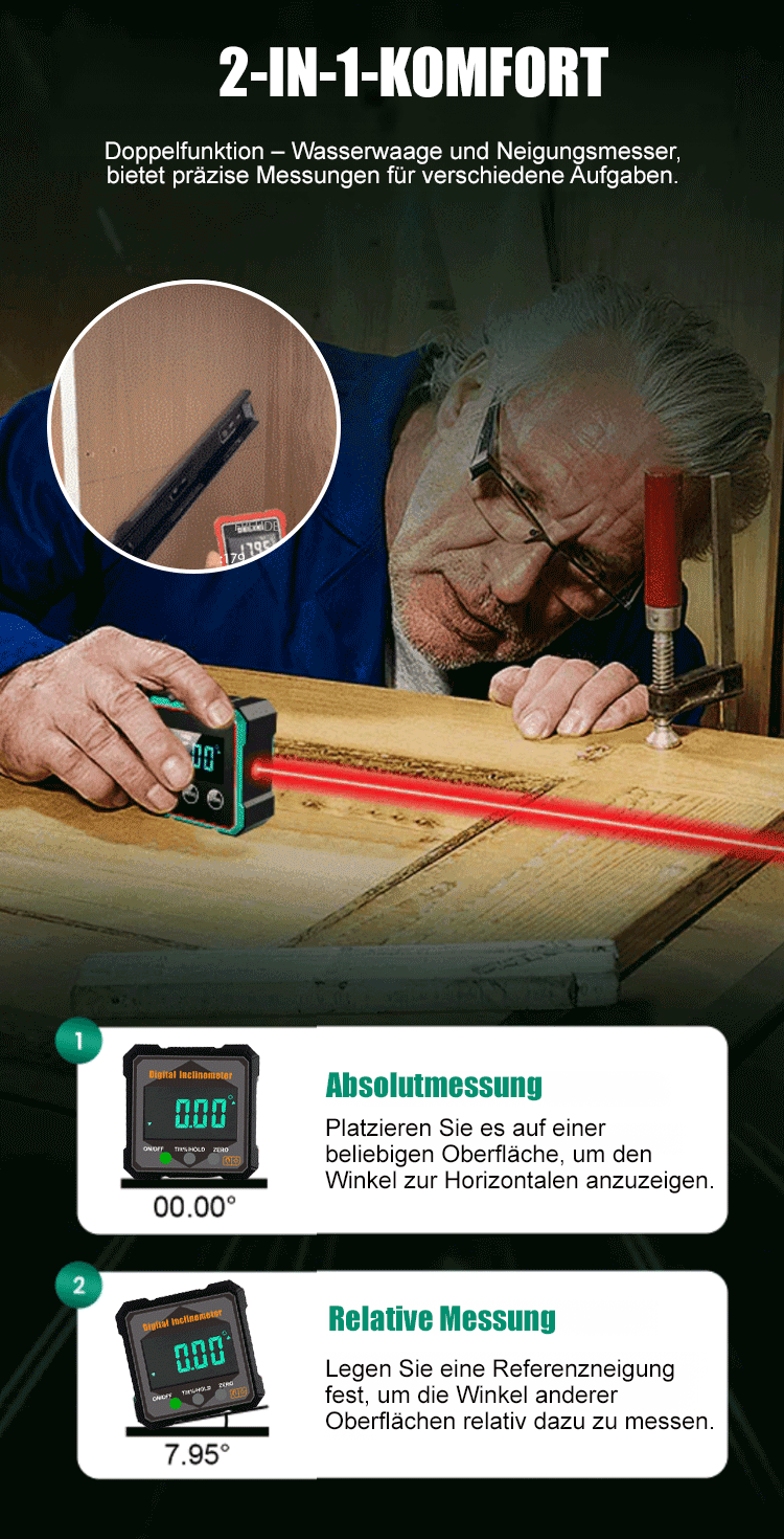 🔥Präzise Messung in nur einer Sekunde, wodurch das Nivellieren und Korrigieren von Neigungen zum Kinderspiel wird. ✅kompatibel mit verschiedenen horizontalen, vertikalen und Neigungswinkeln.