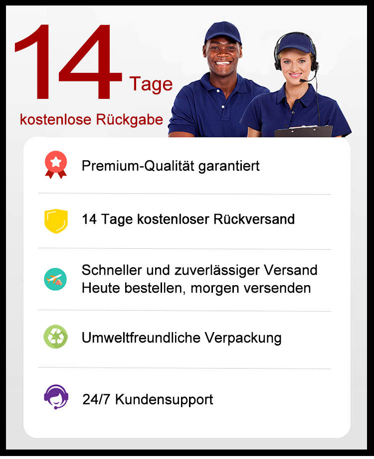 Rückgabe und Umtausch innerhalb von 14 Tagen möglich